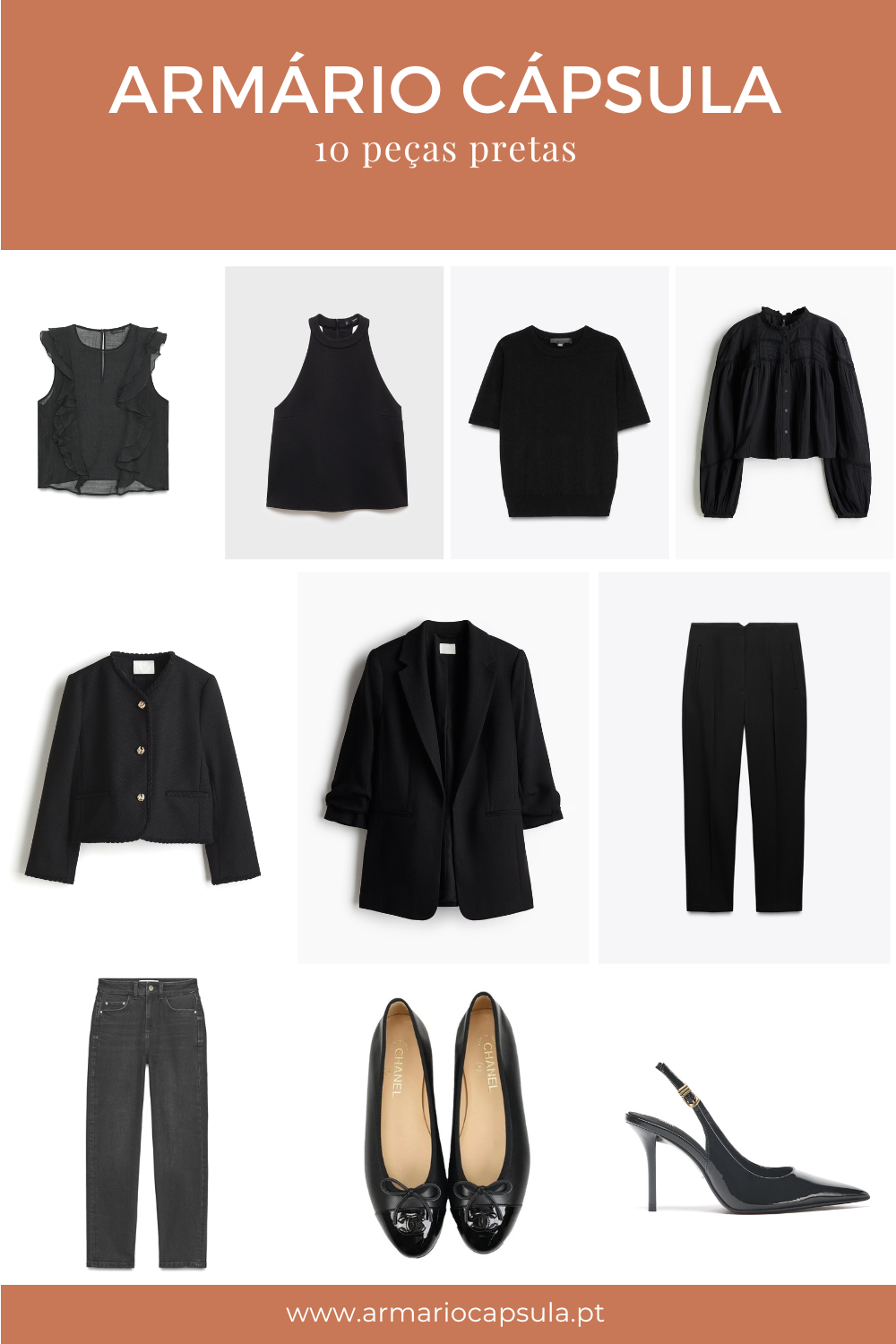 Se há cor que nunca desilude, é o preto. É intemporal, elegante e tem aquela capacidade quase mágica de nos fazer sentir mais confiantes, mesmo nos dias em que achamos que não temos nada para vestir. Foi a pensar nisso que decidi criar um mini armário cápsula com apenas 10 peças, todas pretas, e montar algumas inspirações de looks com elas. A experiência surpreendeu-me (pela positiva!) e quero partilhar contigo os resultados.