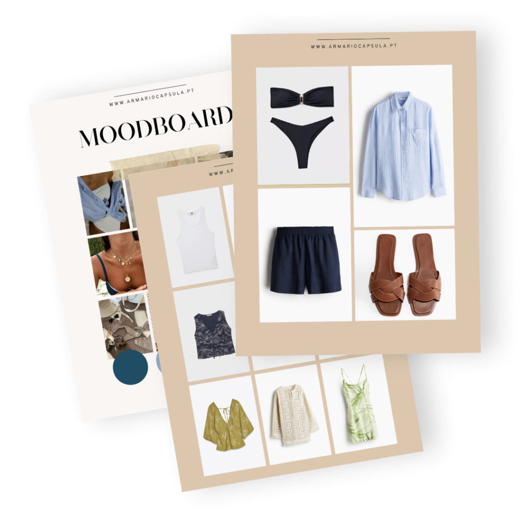 • 1 moodboard por cada destino de viagem (praia, campo e cidade)
